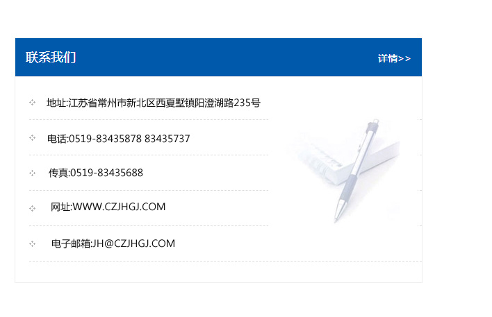 傳真:0519-83435688    郵編:213135    網址:WWW.czjhgj_com.ncgglm.com    電子郵箱:JH@czjhgj_com.ncgglm.com